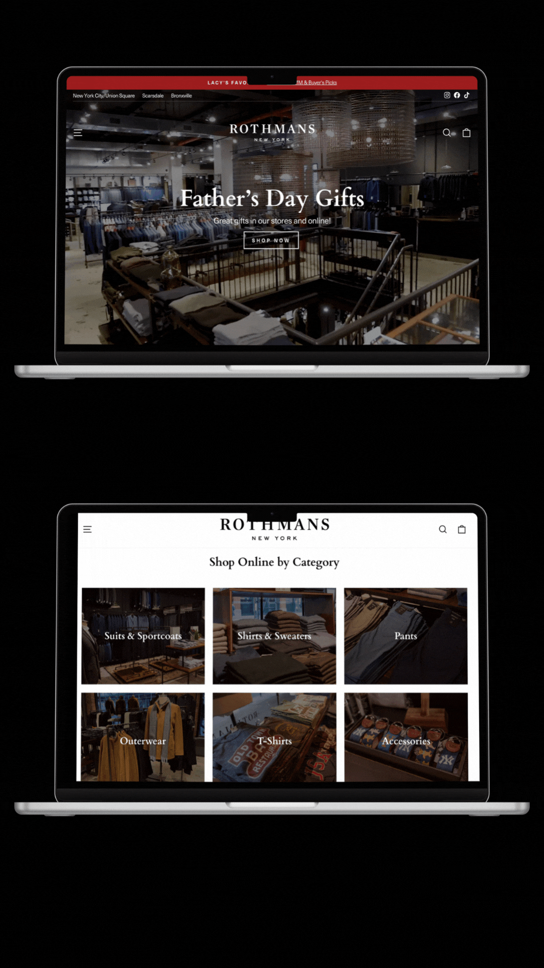 One of NYC’s legacy menswear retailers, Rothmans came to us to modernize their brand and digital presence. We led a full website redesign with updated UX, refreshed their brand positioning, and produced original content for social—all tailored to a customer who’s sharp, relaxed, and confidently New York.